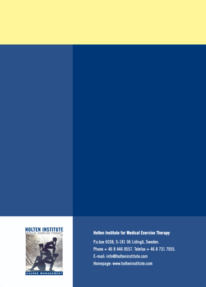 Tom Arild가 환자와 함께 각 운동을 설명하고 시작 및 종료 자세와 운동 수행 방법을 보여주는 운동 매뉴얼(53페이지)의 디지털 DVD(45분 분량, 3개의 비디오 클립)입니다.